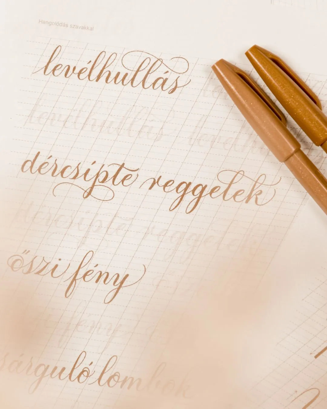 2023-ban művészetterápiás és mindfulness képzést is végeztem, ekkoriban született meg a Hangolódó ötlete – egy interaktív munkafüzeté, ami segít élményalapúan gyakorolni a kalligráfiát és rendszerezni a kreatív énidőt.